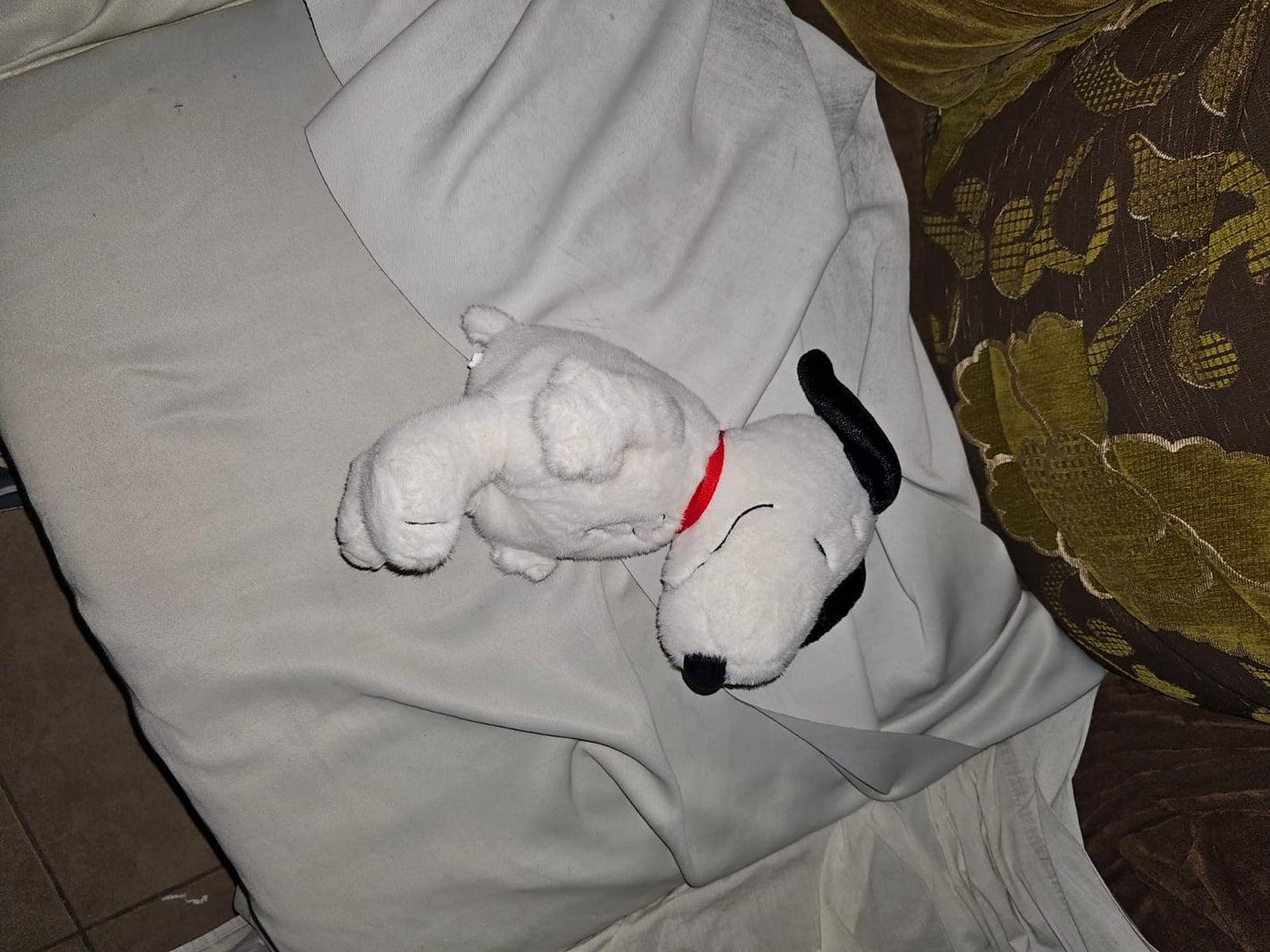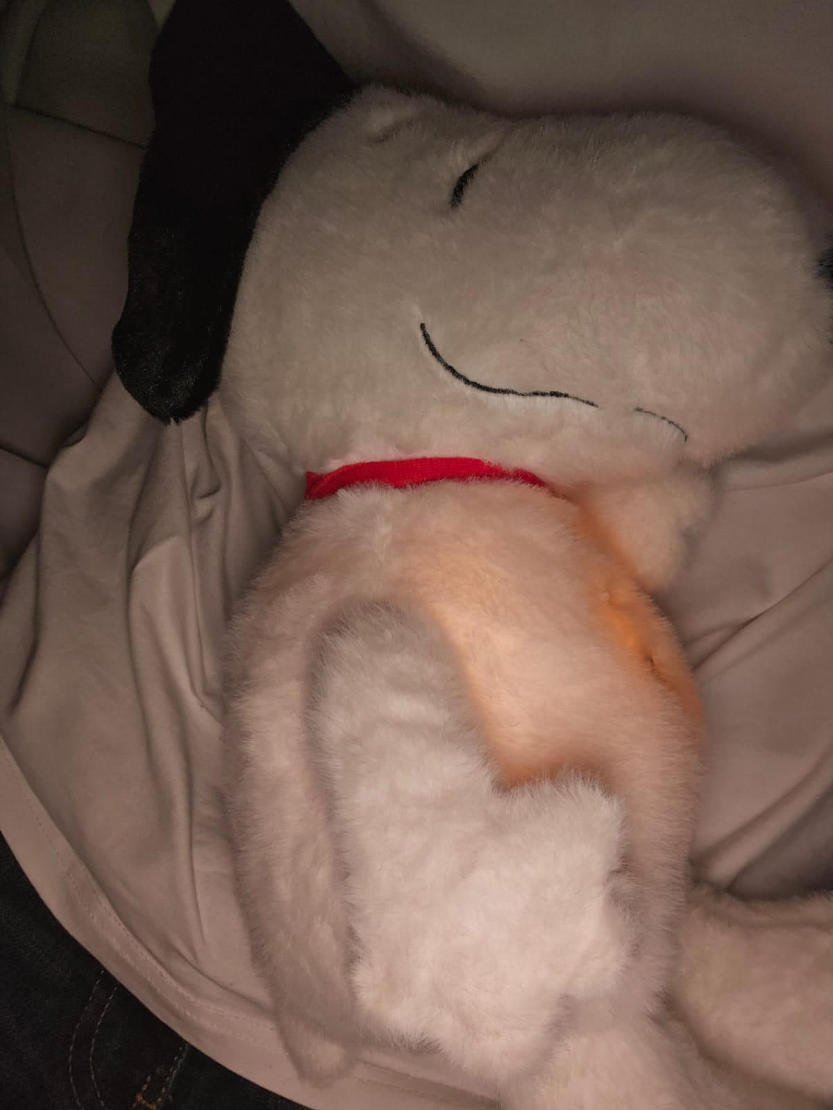 Mi novia se duerme abrazando el snoopy y dice que la calma un montón ahora los dos tenemos uno y parece que dormimos juntos en serio super lindo